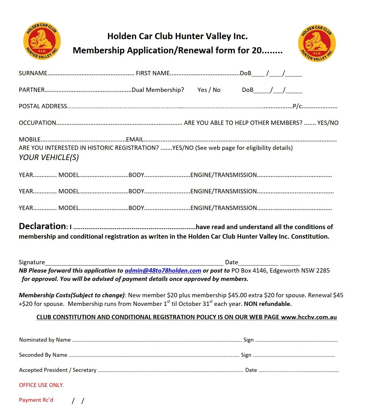 Please complete the membership application and email to admin@48to78holden.com